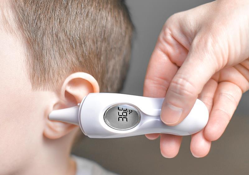 耳温式体温计通过接收被测物体红外波段的热辐射强度,来确定其温度。耳温计的测温度数可能会受到环境温度和耳道干净程度的影响。耳温计的测温速度极快,读数方便。