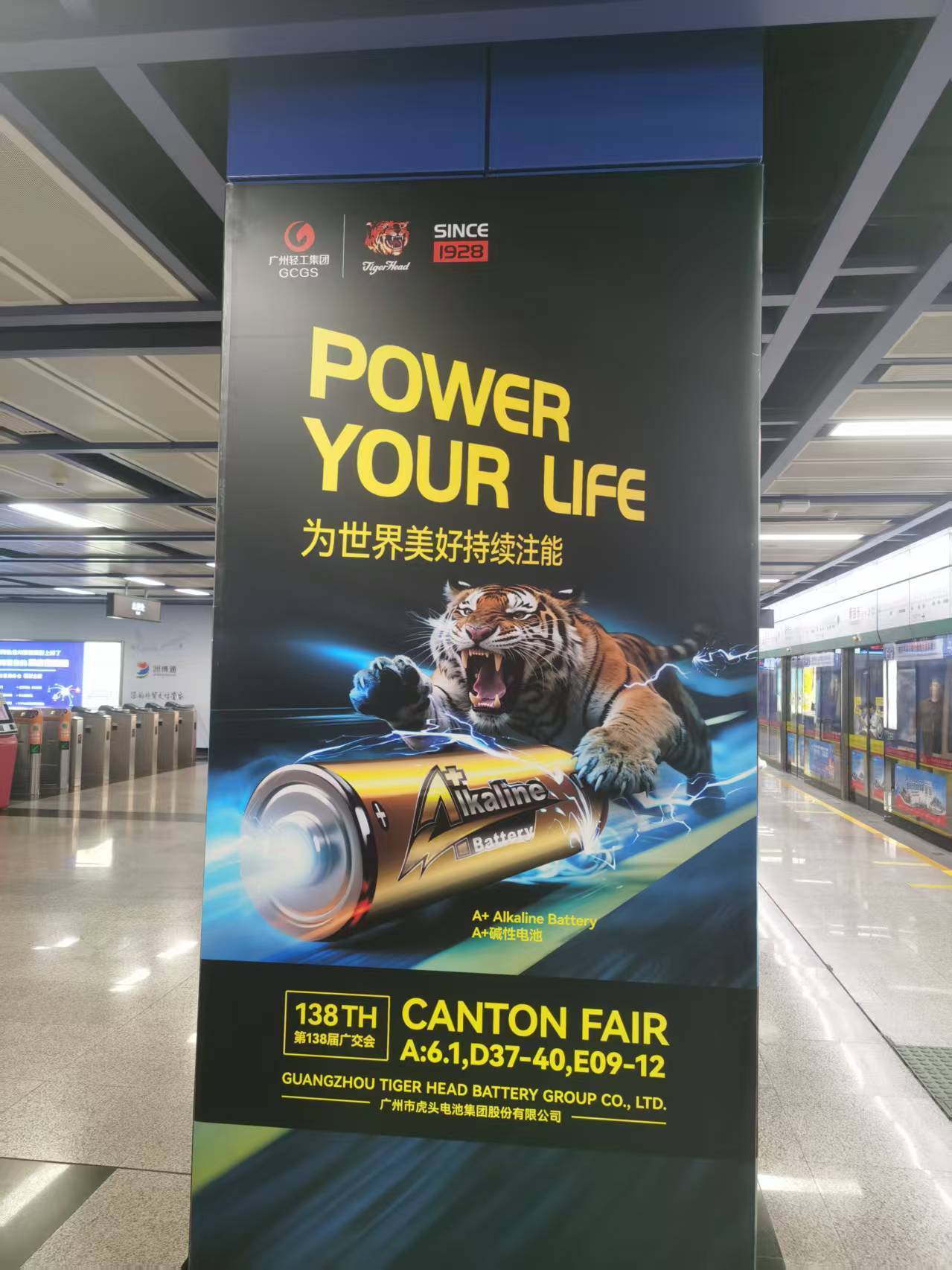 在广州地铁8号线的新港东站内,一幅幅虎头电池的广告牌特别醒目,这是距离广交会展馆6号门最近的地铁站。广交会期间,无数的客商从此经过,一抬头,就能看到这个叫做Tiger Head的电池品牌。